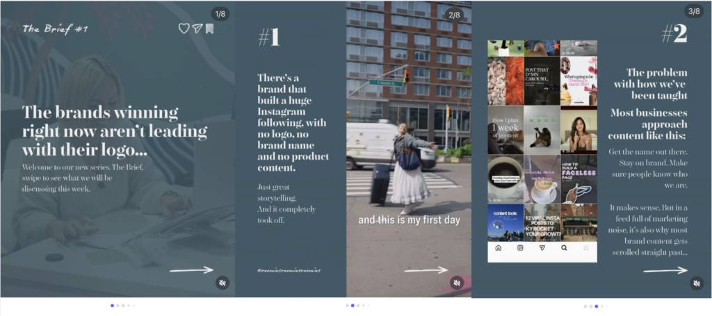 Carousels work particularly well for educational content, tutorials, lists and storytelling.